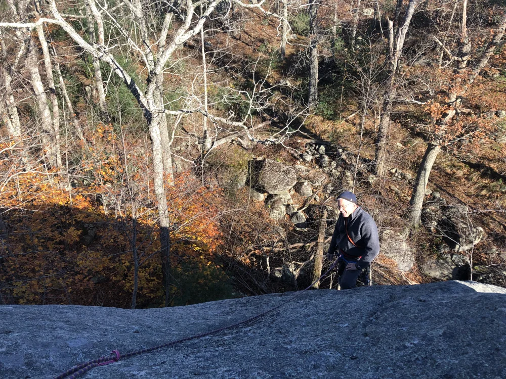 At Little Elephant Head in Tompson Street Reservation on Cape Ann, the 5 feels like a 7, the 6 starts like an 8, and the best 7 climbs like a 5. And as Nick and I discovered last weekend when we set off to climb at this obscure Red-Rock-alternative, the routes themselves are really hard to find.